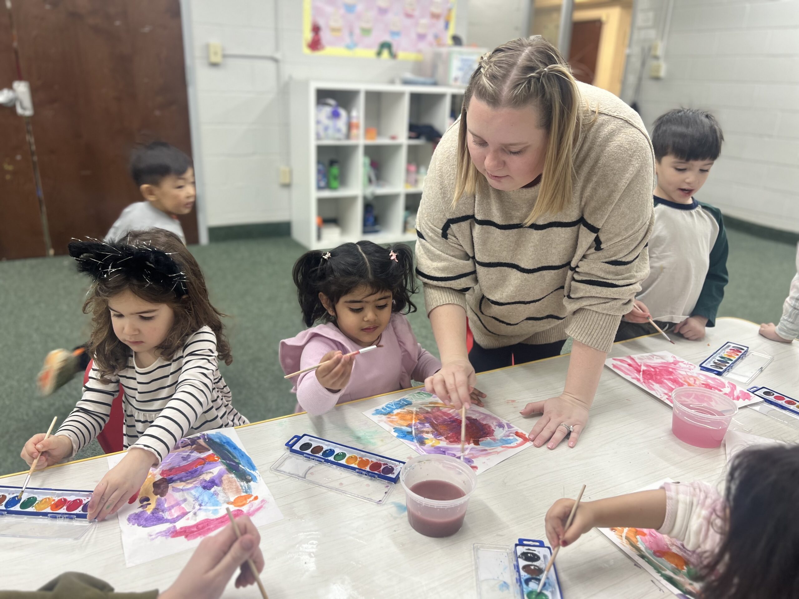 We offer a diverse curriculum that is developmentally appropriate for each classroom and age group. Lessons throughout each week include language, reading, writing development, social and emotional learning, music, STEM, art, math, science, social studies, sports, swim, and more!